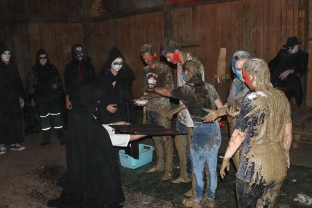 Doch was ist das? Ein lauter Knall, unheilvolle Musik – was kann es damit auf sich haben? Was danach geschieht lässt sich schwer in Worte fasse, am Ende des Spektakels müssen jedenfalls 5 ehemalige CaEx und nun neue RaRo erst einmal den Weg unter die warme Dusche und danach in die Bar finden.