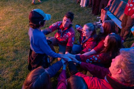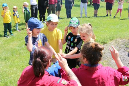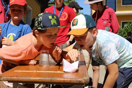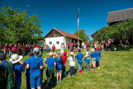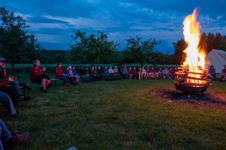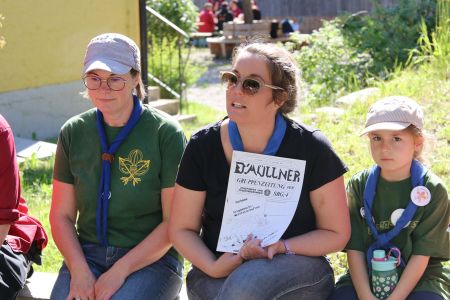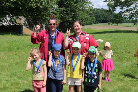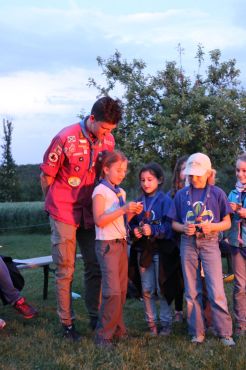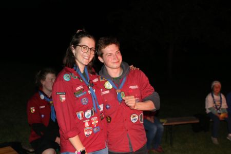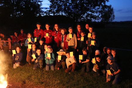 Kaum hatten wir uns versehen, war auch schon der letzte Abend unseres Pfingstlagers angebrochen. Mit Lagerfeuer und Liedern wurden die hart erarbeiteten Abzeichen und Versprechen verliehen. Bei den WiWö gab es ein Versprechen und einige Spezialabzeichen zu feiern. Die GuSp hatten drei mehrfach ausgezeichnete SpezialabzeichensammlerInnen. Zwei Versprechen wurden bei den CaEx verliehen und bei den RaRo eine Wache.