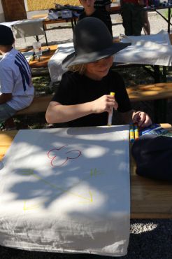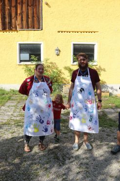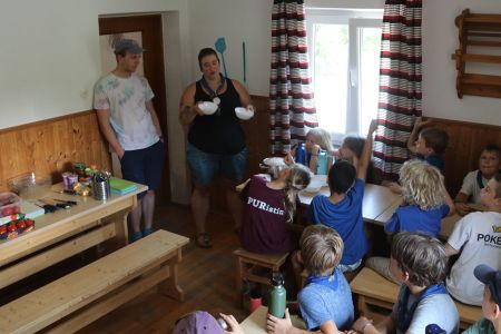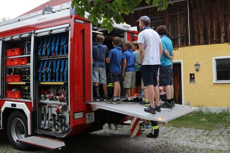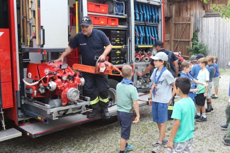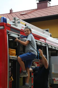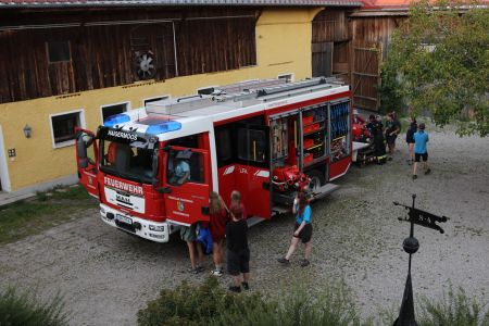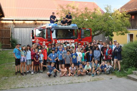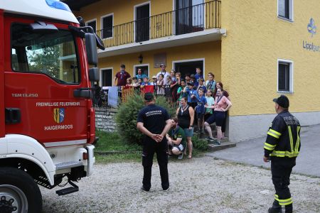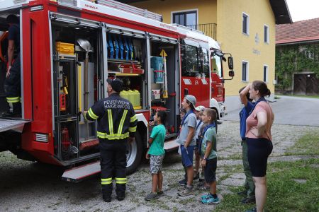 Neben dieser spannenden Begegnung kam auch der Spaß nicht zu kurz. Das sommerliche Wetter nutzten wir, um viel zu baden und draußen zu spielen. Eine kreative Aktivität war das Gestalten von bunten Schmutzwäschesäcken, die jedes Kind mit nach Hause nehmen konnte – als Erinnerung an diese tolle Woche. Ein weiteres Highlight war der Besuch der Freiwilligen Feuerwehr Haigermoos, die uns stolz ihr Feuerwehrauto gezeigt haben.