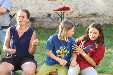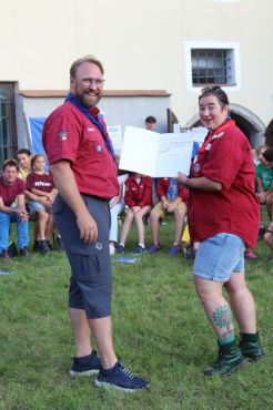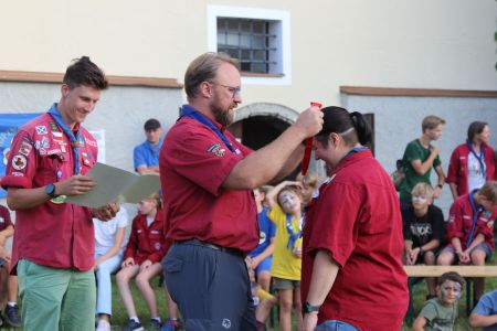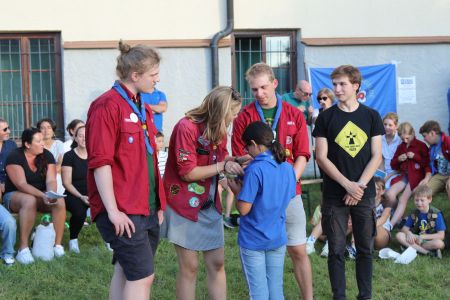 Geschlossen haben wir unseren Tag der offenen Tür klassisch mit einem großen Lagerfeuer, bei dem wir auch noch zwei Verleihungen hatten. Einen ersten Stern durften wir bei den WiWö verleihen und unsere Gruppenleiterin und Stufenleiterin der Biber hat sich ihr Ehrenzeichen in Silber der PPÖ verdient. Herzliche Gratulation!