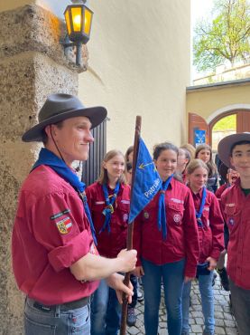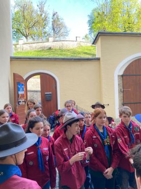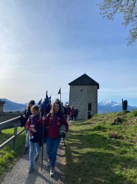 Und so war es kurz nach Ostern an der Zeit, dass die GuSp ihre Schlafsäcke und Isomatten gepackt haben und wir uns gemeinsam auf den Weg auf die Richterhöhe gemacht haben. Und weil das Wetter so schön war, wurden die GuSp mit einer Fotorally durch die Stadt geschickt, wo sie noch lustige Fragen gelöst haben und dann, vorbei an der Katze, den Mönchsberg erklommen haben.