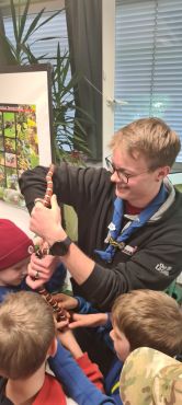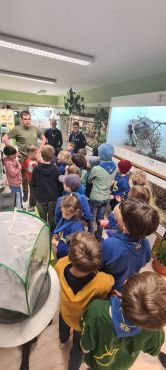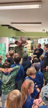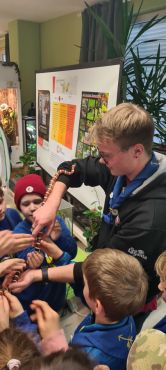 Ein Höhepunkt des Besuchs sind die vielen lebende Gifttiere wie Schlangen, Spinnen, Skorpione und Fische. Wir hatten sogar die Möglichkeit eine Schlange anzufassen (natürlich ungiftig), manche Schlangen wurde für uns aus dem Terrarium geholt und ein besonders mutiges Wichtel durfte eine Kreuzotter mit einer Maus füttern. Es war wirklich eine tolle Heimstunde und wir konnten vieles lernen. Wir können eine Besuch in der „Welt der Gifte“ nur weiterempfehlen.