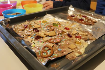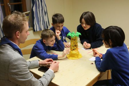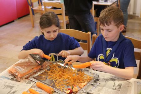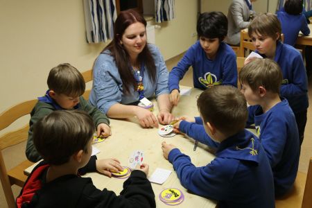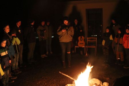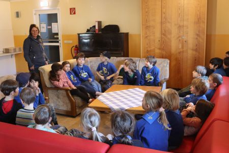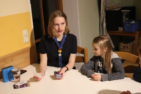 Für die WiWö ging es dieses Jahr, so wie für die GuSp, nach Marktschellenberg. Angekommen, Zimmer bezogen, ausgepackt und dann geht es natürlich weiter mit den Lagerregeln. Diese wurden selbsterarbeitet und anschließend auch in der Meute diskutiert. Anschließend ging es weiter mit der kreativen Gestaltung der Zimmerschilder, damit auch klar war, wer in welchem Zimmer für das Wochenende anzutreffen war. Nach einem leckeren Abendessen machten wir uns auf zu einer aufregenden, aber besinnlichen Fackelwanderung im Schnee. Der nächste Morgen wurde mit einem stärkenden Grießbrei gestartet. Anschließend ging es bei einer rasanten Suche durch das Haus um die Gründung der Pfadfinder, da nur zwei Tage davor BiPi seinen Geburtstag feierte. Natürlich durfte da auch der Kuchen nicht fehlen! Den restlichen Vormittag verbrachten wir mit einem lustigen Stationenbetrieb an der frischen Luft. Am Nachmittag ging es weiter mit der Zubereitung des Abendessens. Die WiWö stellten Butter, Brot, Gemüsesticks und Obstspieße sowie Bruchschokolade her. Als die Sonne schon untergegangen war, durfte auch ein Lagerfeuer mit Verleihungen nicht fehlen. Wir durften 5 neue WiWö im Dschundel herzlich aufnehmen. Der Aufregung kein Ende ließen wir den Abend mit einem Kinderkasino ausklingen, bei sich die WiWö mit Brettspielen Süßigkeiten und Spielzeuge erspielen durften. An unserem letzten Lagermorgen kümmerten wir uns darum, alles zusammenzuräumen und zu putzen, und spielten dann noch ein paar Spiele, bis die Kinder abgeholt wurden.