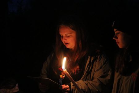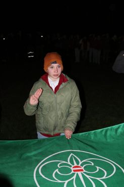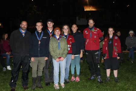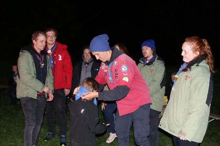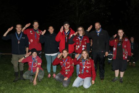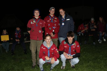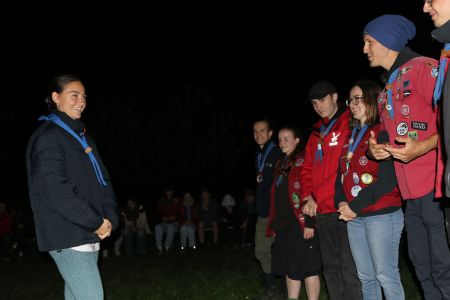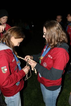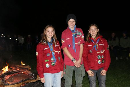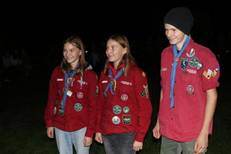 Der Abend bricht heran und das heißt, es wird ein großes Lagerfeuer mit vielen Verleihungen gestartet. Besonders hervorzuheben sind drei fleißige Guides und Späher: Marie, Sarah und Lorenz, die sich ihren Buschmannsriemen verdient haben. Herzlichen Glückwunsch!