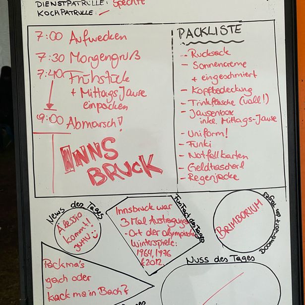 Natürlich durfte auch ein richtiger Zwei-Tages-Hike nicht fehlen: Mit Rucksack, Karte und Kompass, den Patrullenwimpeln, viel Schweiß und noch mehr Spaß stapften wir durch die Tiroler Bergwelt von Igls nach Hall – und am nächsten Tag über Tulfes und Sistrans wieder zurück. Am Ende gab’s Traumreise, Spaghetti und ziemlich müde, aber sehr, sehr stolze Gesichter.