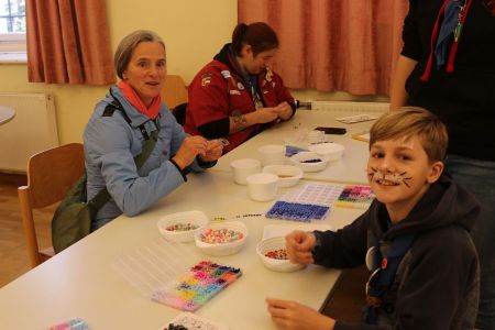 Trotz des nicht so idealen Wetters durften wir viele neue und interessierte Gesichter begrüßen und ihnen zeigen, was wir Pfadfinder so machen. Beim abwechslungsreichen Programm war für jede und jeden etwas dabei. Während die einen kreative Buttons gestaltet haben, bastelten andere Freundschaftsarmbänder oder verzierten Holzscheiben mit einem Brenngerät. Durch gekonntes Pinselschwingen unserer Leiterinnen verwandelten sich viele Kinder in Superheld*innen und verschiedenste Tiere. Für alle Pfadiexperten gab es ein Indoor-Schauzelt, in das sich ein paar falsche Gegenstände geschlichen haben, die es zu entdecken gab.