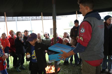 Den Abschluss des erfolgreichen Tages machte unser alljährliches Eröffnungslagerfeuer. Neben klassischen Pfadi-Liedern, wurde natürlich auch unser Gewinnspiel ausgelost und eine besonders aktive und fleißige Mutter (zweier Mitglieder) wurde in unser Support-Team aufgenommen.