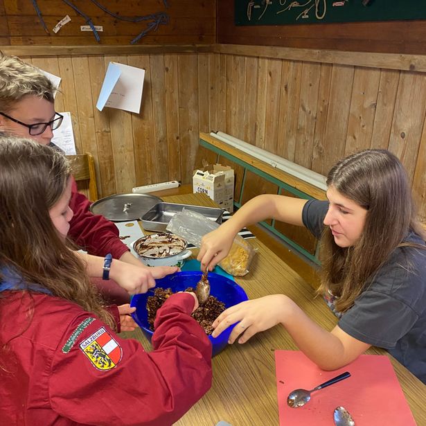 Zum Abendessen gab es leckere Kasnocken, die allen vorzüglich schmeckten. Anschließend wurden gemeinsam die Betten bezogen. Der Abend stand ganz im Zeichen der Gemütlichkeit. Bei einem Filmabend mit Popcorn und Tee kam sofort gemütliche und heimelige Stimmung auf.